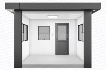 This model, measuring 240x300 cm, goes beyond a single task area to offer versatile use. The spacious interior allows for the accommodation of security personnel, as well as visitor reception, document processing, or directional needs. It can also be used as a short-term sales booth or information point.