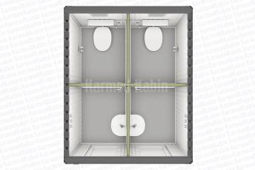 210x260 cm ölçüleriyle bu model, tekli WC kabinlerinden daha büyük bir iç hacme sahiptir. Bu da yalnızca tuvalet değil; içeride lavabo, küçük bir temizlik alanı ya da engelli erişimi gibi ek ihtiyaçların da karşılanabileceği anlamına gelir. İçeriye rahatlıkla ayna, sabunluk, havalandırma sistemi gibi detaylar yerleştirilebilir. İhtiyaca göre klozet yerine ayaklı tuvalet tercihi yapılabilir.